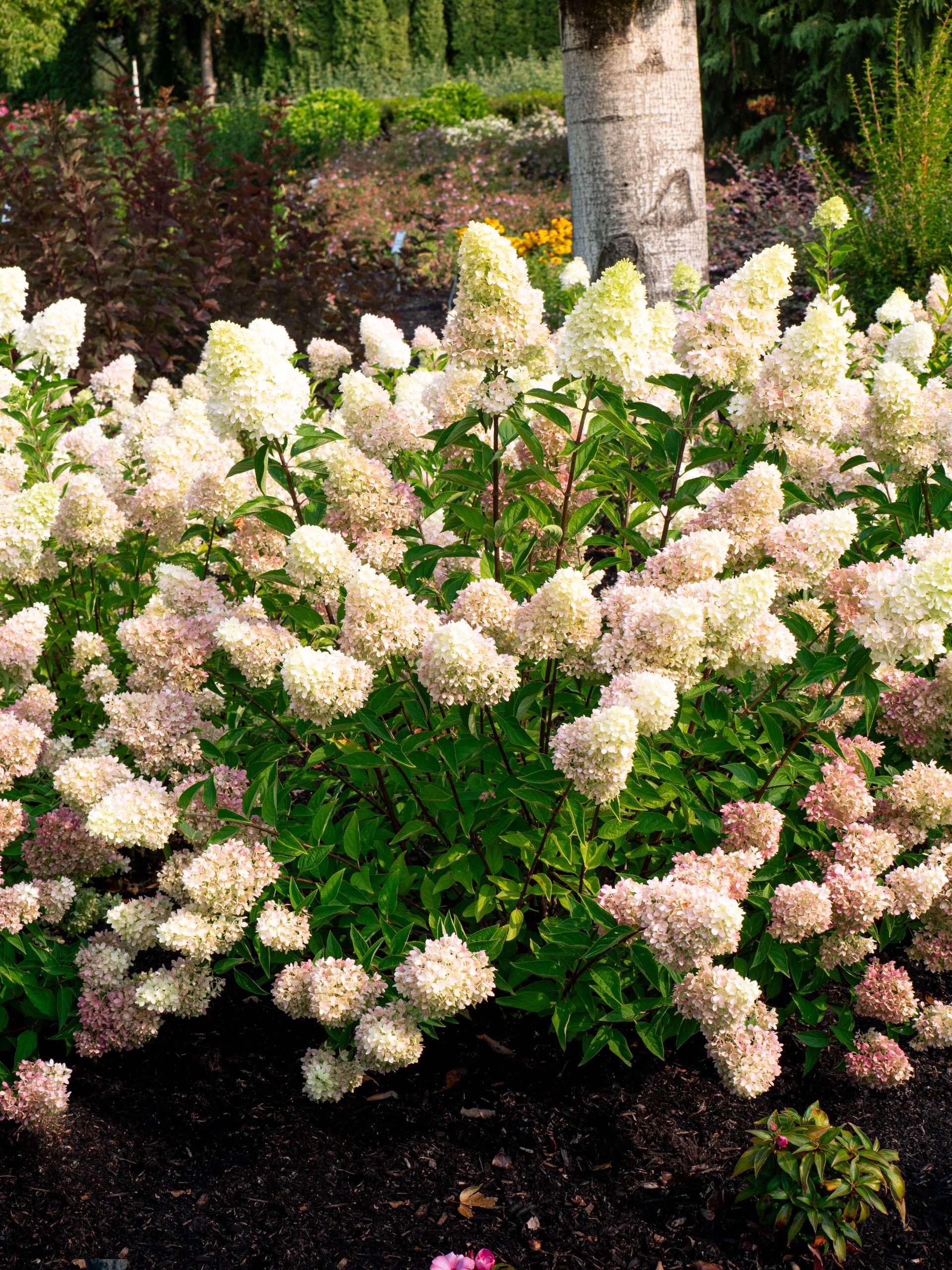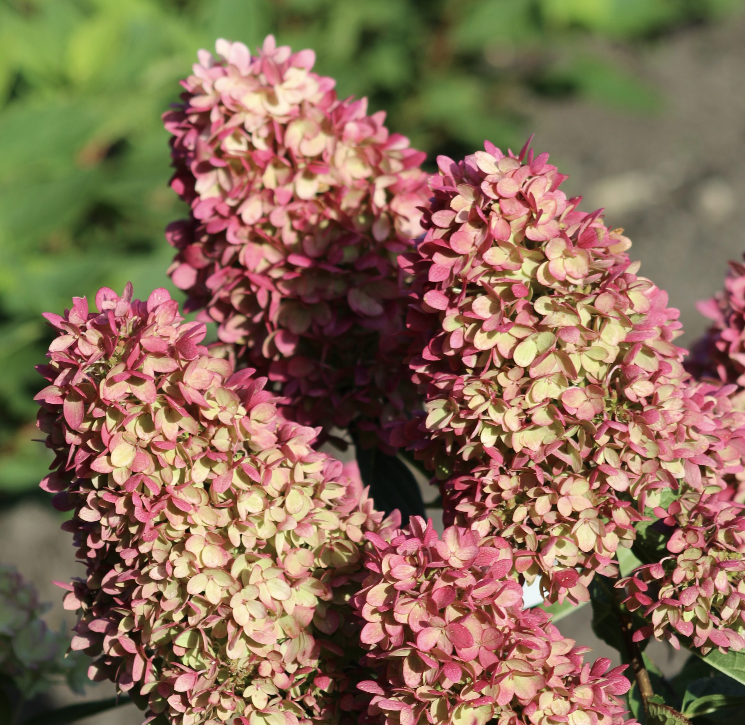 - Blooms begin green/cream in August, turn pink in fall